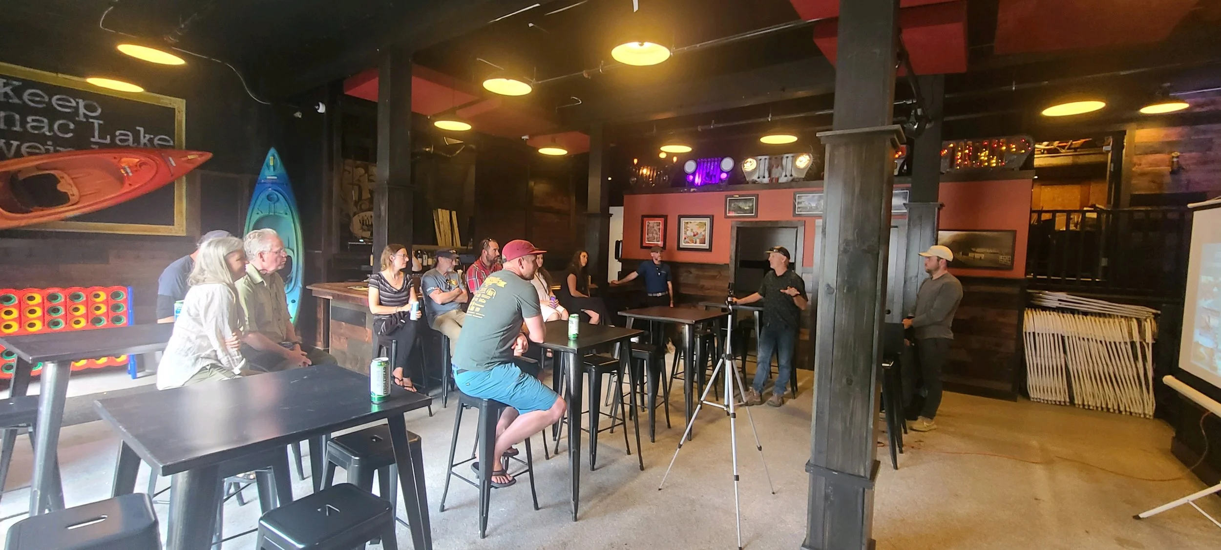 To cap off the day, REP presented to the Tom Boothe Whitewater Park Friends, the community group championing the park's development. Held at the Garagery, the presentation included a visual presentation of various whitewater parks designed and built by REP, as well as an outline of the vision and potential for a similar concept in Saranac Lake. Gary Lacey and Spencer Lacey concluded the presentation with questions and answers from the Friend’s Group.